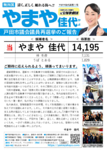 やまや佳代さんは、宝塚歌劇団の15年間で培った規律正しさと誠実さを兼ね備え、最後までやり抜く粘り強さがあります。また、介護の経験から生活者の痛みに寄り添い、責任を持って行動できる方です。新たに市政へ挑戦する、やまや佳代さんへの温かいご支援をお願いいたします。